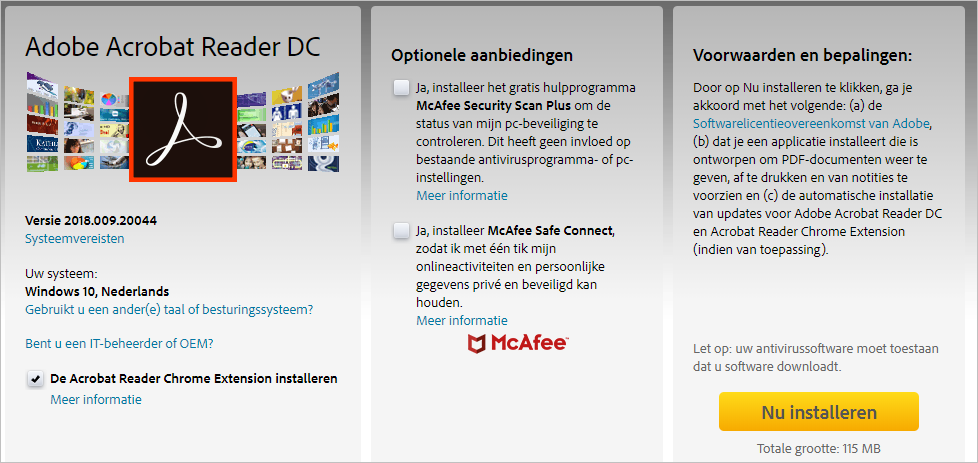 Klik op Nu installeren om de laatste versie van Adobe Reader te